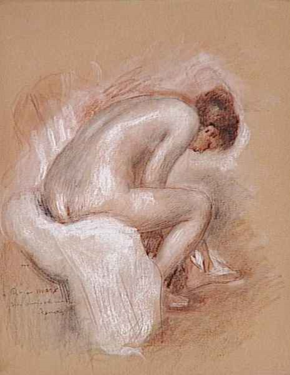 Nu féminin assis, s'essuyant le pied gauche de Renoir Auguste (1841-1919)