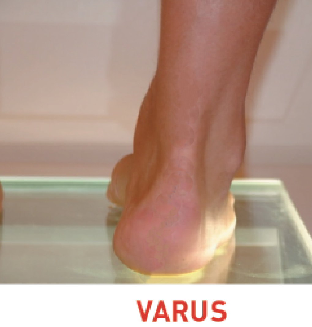 Le varus calcanéen est plus rare que le valgus. Il est souvent associé à un pied creux, un genuvarum et est accentué par un tendon d'Achille court. Il nécessite des supports plantaires sur mesure.