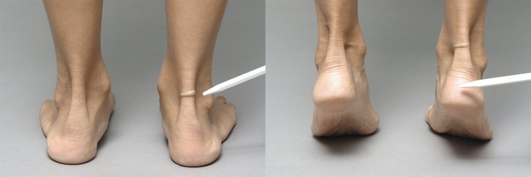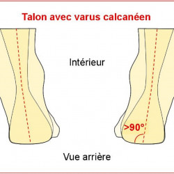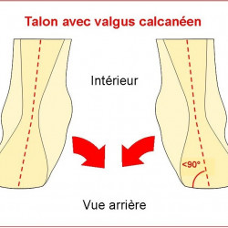 Le valgus calcanéen avec le port de chaussures trop souples et sans contrefort. s'accentue. Il y a alors une usure interne du talon de la chaussure. Il nécessite comme traitement le port de supports plantaires sur mesure
